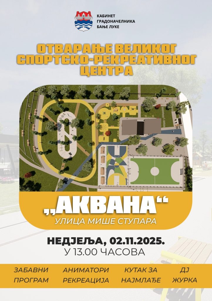 Наиме, отварање новог спортско – рекреативног комплекса предвиђено је за недјељу 2. новембар од 13.00 часова, те је за све присутне припрељен разноврстан програм.