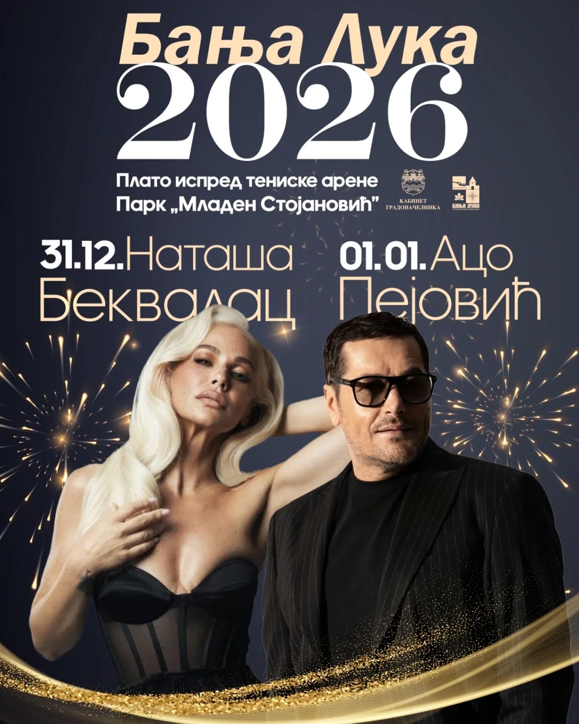 Већ сутра, 31. децембра плато испред спортског комплекса у Парку „Младен Стојановић“ биће центар незаборавне атмосфере уз Наташу Беквалац, која са својим тимом припрема специјалан репертоар. Програм почиње од 21.00 час, а сјајну увертиру у новогодишњу ноћ направиће бањалучки умјетник Дамјан Врачар.