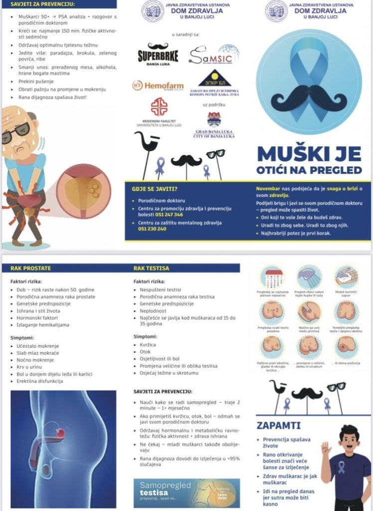 Кампања „Ми бринемо о здрављу мушкараца, а ви о њиховој љепоти“, под слоганом „Мушки је отићи на преглед!“, званично је почела, а у оквиру ње организовани су и бесплатни превентивни прегледи за мушкарце.