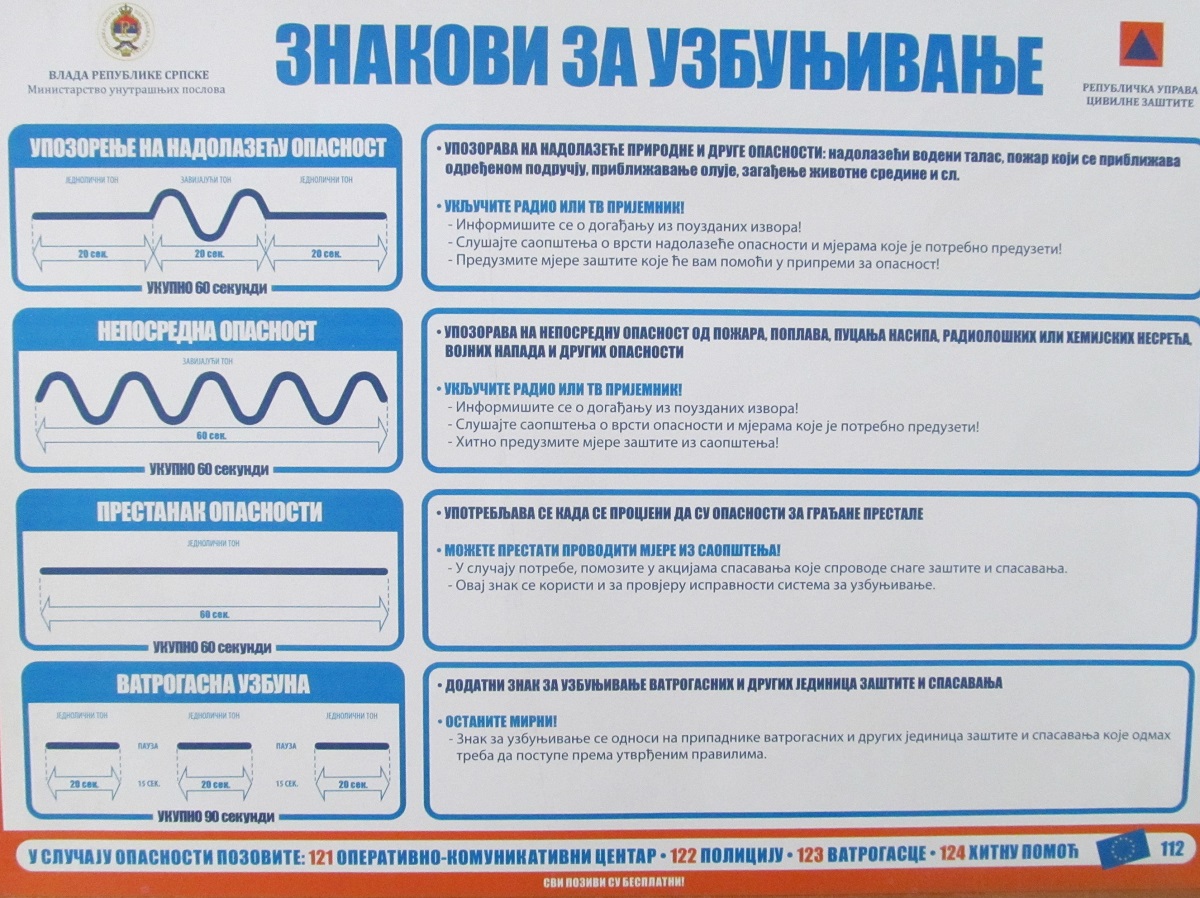 У случају опасности од елементарних непогода и других несрећа позовите Оперативни комуникативни центар (ОКЦ) број 121.