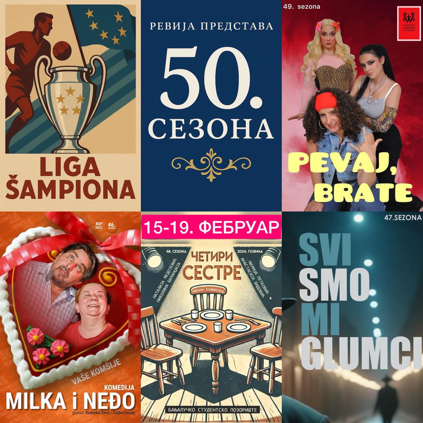 У оквиру 50. сезоне Студентског позоришта Бања Лука, биће организована ревија представа – пресјек најгледанијих и највољенијих наслова.