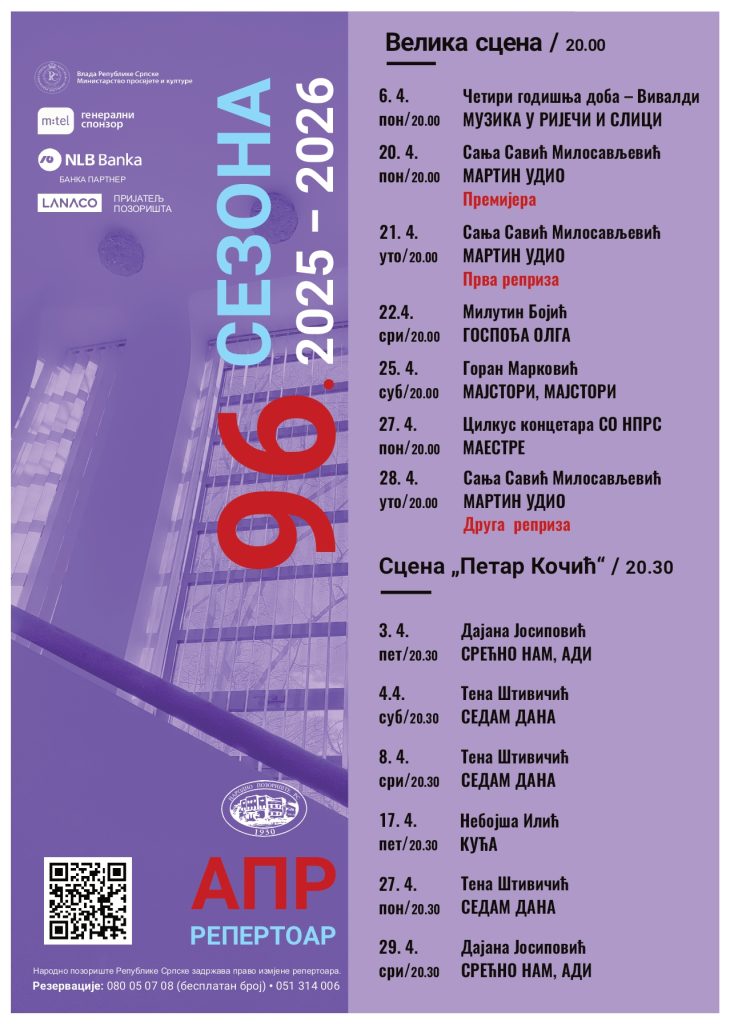 Април доноси сјајне представе у Народном позоришту Републике Српске.