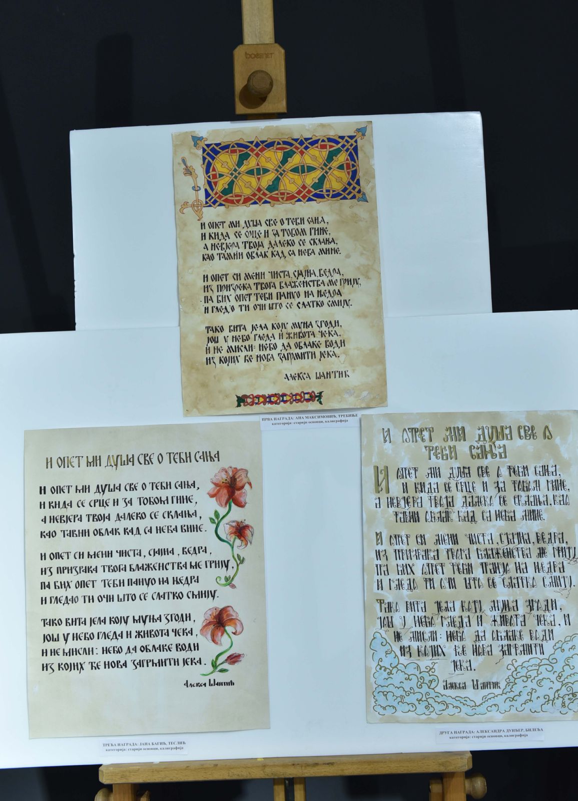 Kada je riječ o manifestaciji „Muzejski dani ćirilice“ – danas su uručene novčane nagrade, pokloni i priznanja autorima nagrađenih radova po konkursu „Srce piše ćirilicu“ za izbor najljepšeg ćiriličnog rukopisa i kaligrafskog rada u pet kategorija.