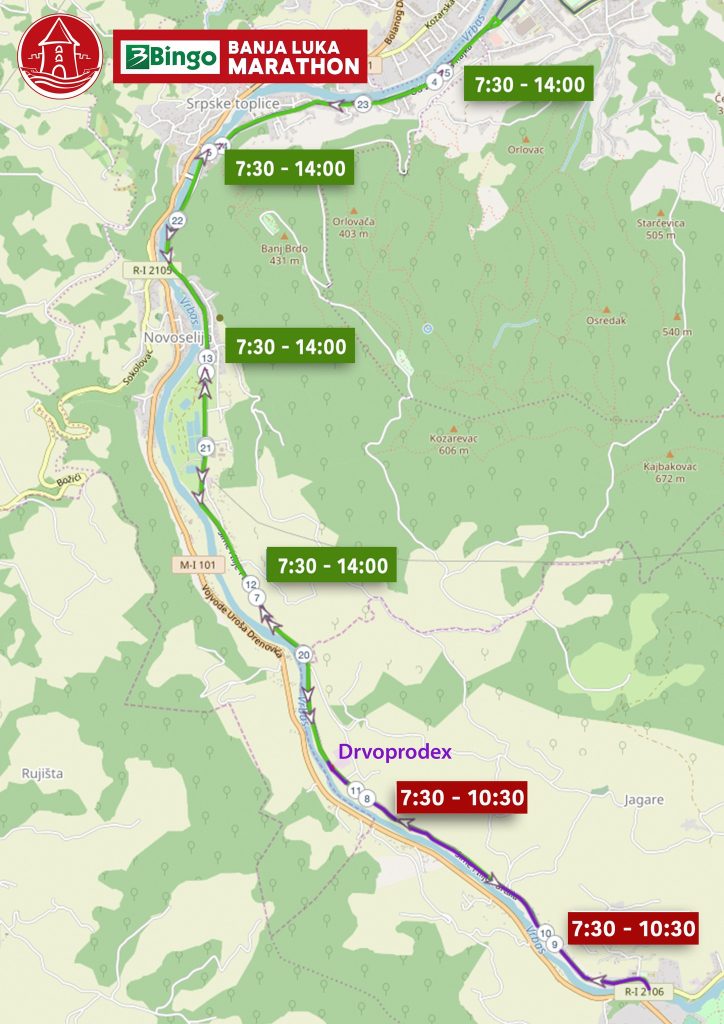 Одјељење за саобраћај и путеве обавјештава грађане да ће у недјељу 28. септембра бити обустављен саобраћај због одржавања манифестације „Бањалука маратон – Бањалучки полумаратон“ и то: